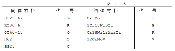 8.閥體材料代號用漢語拼音字母表示,按表 1—15的規(guī)定